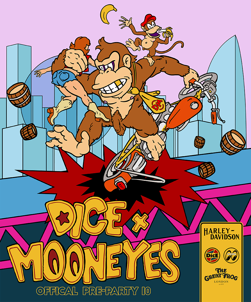 Animation and digital flyers made for instagram posts announcing Mooneyes Dice Pre-Party in Yokohama Japan.